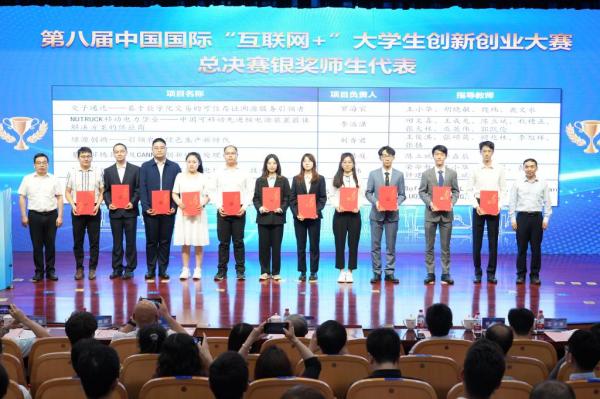 创新创业学院院长、实践教学中心主任王秋旺、王小华为国赛银奖团队师生代表颁发证书。