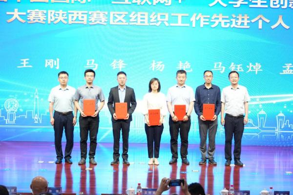 就创中心副主任徐东海、团委书记李利波为“陕西赛区先进个人”获奖代表颁发证书。