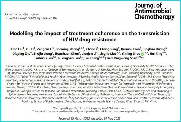 该研究成果以《基于传播动力学模型评估治疗依从性对HIV和耐药毒株传播的影响》(Modelling the impact of treatment adherence on the transmission of HIV drug resistance)为题发表于传染病领域著名期刊《抗微生物化疗杂志》(Journal of Antimicrobial Chemotherapy,1975年由英国抗微生物化疗学会创立的涵盖传染病、微生物、药学领域的专业期刊)。