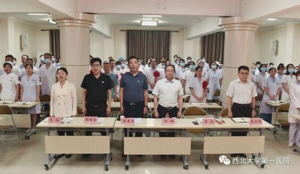 6月29日下午,西北大学第一医院举行庆祝中国共产党成立102周年暨“七一”表彰大会,以实际行动向党的生日献礼。西北大学医学院负责人出席会议并讲话,第一医院党委负责人讲话和作主题党课辅导,医院班子成员、党支部负责人、中层干部护士长、受表彰人员、党员代表、积极分子共计150余人参加了大会。会议由第一医院负责人主持。