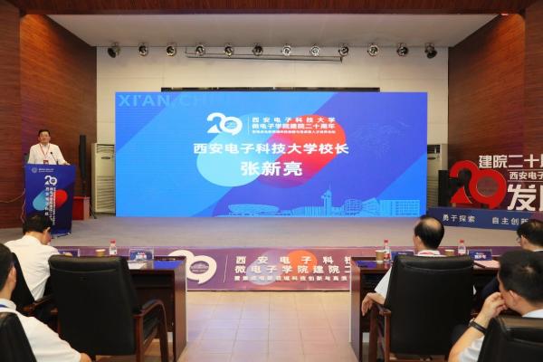 7月1日,西安电子科技大学微电子学院建院二十周年暨集成电路领域科技创新与高质量人才培养论坛在北校区举行。西安电子科技大学校长张新亮参加并讲话,原校党委副书记、学院首任院长杨银堂,微电子学院院长张玉明,北京大学集成电路学院党委书记王源,杭州加速科技有限公司董事长邬刚,微电子学院副院长教师代表郑雪峰等先后致辞发言。中国科学院院士郝跃,国际欧亚科学院院士、清华大学教授魏少军,东南大学集成电路学院院长孙伟锋(受中国科学院院士黄如委托),华天科技总部技术市场中心总监刘卫东受邀作主旨报告。西安电子科技大学副校长张进成、李赞,工信部电子第五研究所总工程师恩云飞,清华大学集成电路学院院长吴华强以及来自其他兄弟高校国家示范性微电子学院的师生代表和行业企业代表200余人共同参加活动。活动开幕式由微电子学院党委书记肖刚主持。