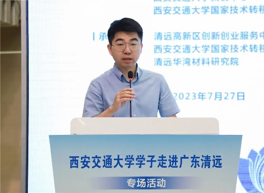 朱磊介绍了清远高新区的发展历程和区位优势、产业发展等情况,他指出,高新区与西安交通大学合作设立了清远高新区人才驿站、西安交通大学国家技术转移中心清远科创中心,冠名支持西安交通大学出席第十一届“清远”杯创业实践大赛,通过长期的合作交流,为陕西高校科研资源与清远产业融合、人才交流奠定了良好基础。