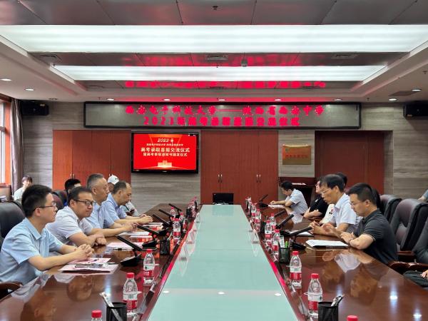 西安中学副校长薛党鹏介绍了中学基本情况和2023年高考情况。他表示,感谢西电校领导及相关工作人员专程前往高中为录取新生颁发录取通知书,西安电子科技大学是西安中学师生心向往之的著名学府,西电的优秀人才培养质量得到了新生和家长的一致赞誉。他强调,2023届西中学子在进入大学生活后,要不忘初心、奋力拼搏,在新的赛道中成就更优秀的自己。希望西电与西中的合作友谊进一步持续加深,双方共同努力,全力服务保障学生成长成才,培养更多两校的优秀校友,为祖国教育事业奋力拼搏。