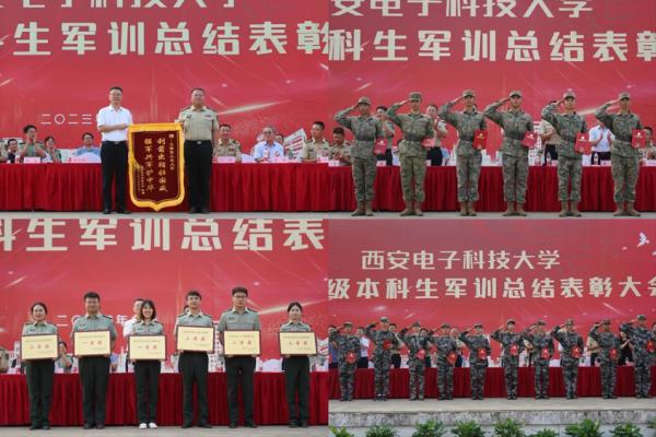 热血铸军魂,青春正勃发。9月8日下午,西安电子科技大学2022级本科生军训总结表彰大会在南校区南操场举行。全体参训学生以高昂的士气、整齐的口号、精准的动作展示汇报了军训成果。在嘹亮的校歌声中,2022级本科生军训工作圆满结束。党委副书记、副校长任小龙,党委常委、党委宣传部部长季庆阳参加表彰大会。