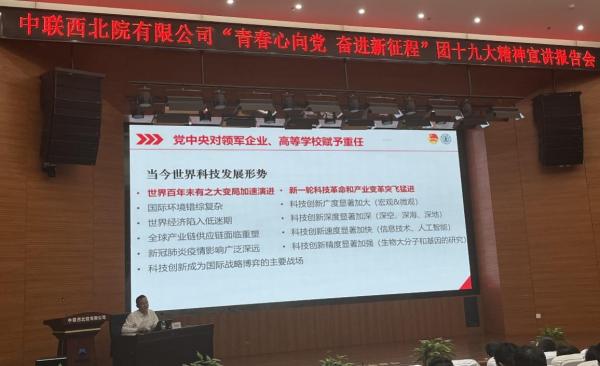 座谈会后,李利波进行了题为“青春心向党奋进新征程”团十九大精神的宣讲,他从共青团工作的中心任务、时代主题以及自我定位等三个方面入手,结合自身参加团十九大的感受,带领中联西北工程设计研究院有限公司团委委员、全体团员青年及2023年新入职员工共同学习领悟团十九大工作报告重要部署,鼓励青年坚定理想信念,挺膺担当。他表示,企业和高校应当肩负起时代赋予的重任,携手并进、合作双赢,为民族复兴和强国建设贡献青年力量。