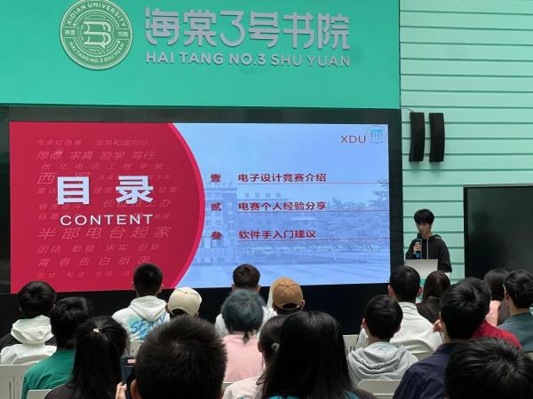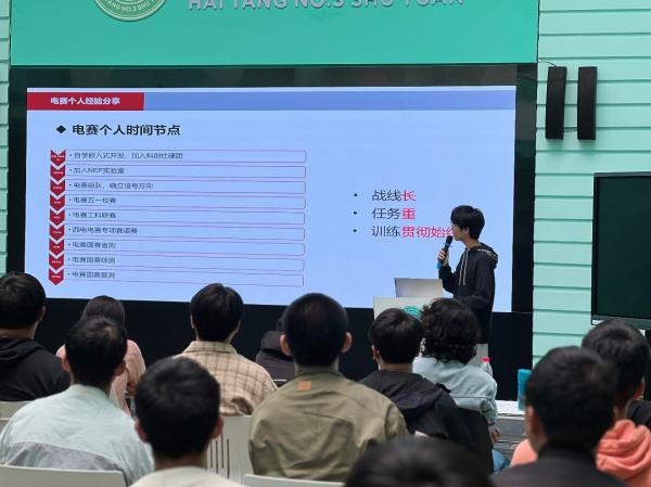 为充分发挥朋辈榜样示范引领作用,助力学生在新的学习阶段找准方向、明确目标,深入了解科创赛事和科研历程,9月24日下午,海棠3号书院成功举办“朋辈领航”系列分享活动第一期——电赛经验分享及软硬件学习建议。全国大学生电子设计竞赛省级、国家级奖项获得者,电子信息工程专业21级本科生李昕宇、肖世钟及22级本科生李金橙受邀作主题分享,近200名学生参加活动。