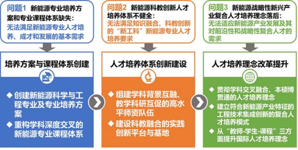 第二、突破学科壁垒,切实推行“教与学”机制改革,全方位塑造科教创新人才培养体系,从生化材物等学科吸收青年人才,建立学科融合、结构合理、传承有序,学科背景互融、教学科研互促的高水平师资队伍。建设科教融合的实践平台与基地,打造新能源科学研究与技术应用科教创新人才培养体系。创立太阳能等5个本科教学实验室,以教学实践激发学生科教融合内生学习动力;依托国家级科研基地,以项目为载体,开展自主性、个性化科技创新活动,激发学生创新潜质;建设校内外工程实践基地,驱动学生以理论联系实际的方式去解决实际技术应用问题。