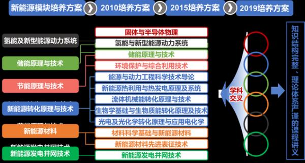 第三、立足新能源战略性新兴产业的交叉性、前沿性与战略性的学科与产业属性,全面提升学科交叉融合、工程技术集成创新和国际化复合人才培养理念,引领新能源前沿与战略人才国际竞争优势。以背景融合的师资队伍和学科交叉的知识体系贯彻学科交叉融合人才培养理念;以本硕博贯通培养,综合基础理论学习、工程科学实践和创新能力养成,建立新能源工程技术集成创新的前沿性与战略性复合人才培养模式;从教学团队、专业课程、学生培养等三方面提升国际人才培养理念;依托引智基地和国际合作基地,组建国际化教研团队,创办国际课堂,建设4门英语课程和3门双语课程,组建国际化课程组;以创新型人才国际合作培养项目支持学生联合培养、短期访学和学术交流,吸引国际学生互访交流,开拓国际视野。