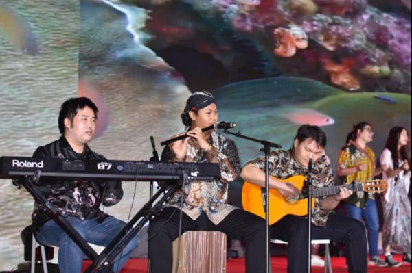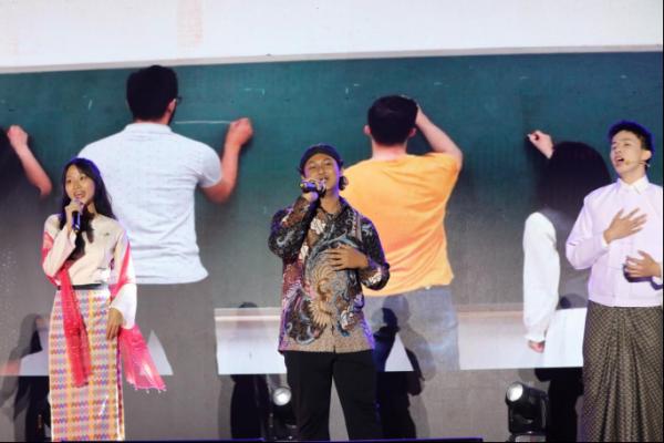 印度学生的舞蹈《Ganas》将现场气氛推向高潮,场下的中外学生都跃跃欲试,有十名中外学生被邀请上台,现场学习了一小段印度舞蹈。紧接着,印度尼西亚学生为大家带来了一段优美的歌舞表演《Wonderful Indonesia》,以其独特的节奏和声音,向大家展示了印尼人民对自然和生活的热爱,给现场带来欢乐的氛围。随后,缅甸和马来西亚学生倾情演绎的街舞《Unforgiven》,自由奔放,活力四射,让台下的观众也不自觉地跟随节奏摇摆起来。