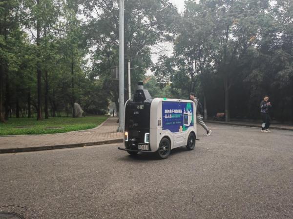 “我出发啦”“麻烦借过一下,谢啦”“叮,我停好啦”“同学,我正在工作,请让一让”“请核实信息,不要取错快递哦”“你好,可以帮我关一下柜门吗”不仅外形呆萌可爱,轻快俏皮的语音播报声也为校园风景增加了一抹亮色。