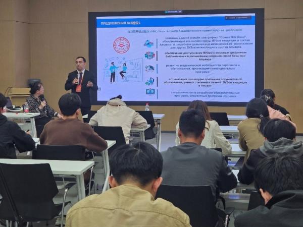 10月8日晚,塔什干国立交通大学科学事务副校长Said Shaumarov教授在创新港泓德楼为学生带来了一场名为“迈向大学4.0的科学和教育数字化”的主题讲座。Said Shaumarov教授从IBM发布《为自动化人工智能驱动的世界增强工作》研究报告入手,指出AI和数字化时代对劳动力技能提出的新要求和数字化教育发展创新的必要性。另外,他还介绍了乌兹别克斯坦高等教育情况、塔什干国立交通大学关于数字化教育的线上渠道以及国际教育合作项目。百余名学生通过线上线下结合的方式参与了本次讲座。