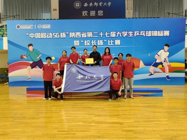 我校乒乓球队共有12名运动员报名参加甲组女子团体、男子团体、女子单打等项目。校女队在赛场顽强拼搏,以高昂的斗志和高超的球艺在比赛中脱颖而出,先后战胜了延安大学、西安交通大学、西北农林大学,最终在决赛中战胜西北工业大学,勇夺女子甲组团体冠军,这是我校首次在陕西省大学生乒乓球锦标赛团体项目中夺冠。经济管理学院刘韵姗、马瑛敏再次蝉联女子甲组冠、亚军,物理学院崔理、文化遗产学院魏琰昭分获甲组女子单打、男子单打第五名,殷春宇老师荣获“优秀教练员”称号。
