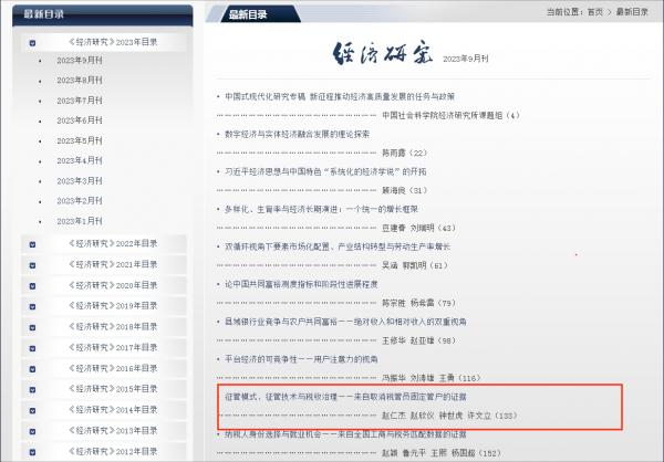 近日,我校经济管理学院赵仁杰副教授在《经济研究》2023年第9期发表题为《征管模式、征管技术与税收治理——来自取消税管员固定管户的证据》的学术论文,研究了征管模式与征管技术变化对国家税收治理的影响。