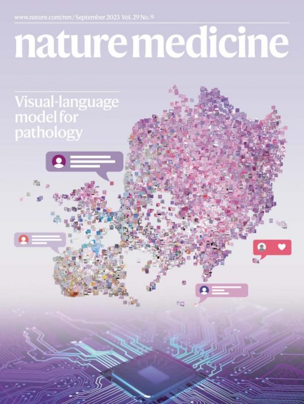 该成果以《通过医学Twitter 进行病理图像分析的视觉语言大模型》(A visual–language foundation model for pathology image analysis using medical twitter)为题在医学顶级刊物《自然·医学》(Nature Medicine,2023年影响因子82.9)发表。该成果同时被Nature Medicine选为2023年9月封面文章。