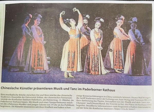 “乐舞醉长安”文化交流演出不仅是一场文化盛宴,也是中德友谊的象征。人文学院访问团以精湛的演艺技巧和富有内涵的节目内容,讲述精彩纷呈的中国故事,展现了多元的中国文化魅力。通过这次活动,也向世界展示了西电的风采和实力,让更多人了解和喜爱中国文化,促进了国际间的交流和发展。活动被新威斯特法伦帕德博恩《红报》《绿报》等德国当地主流媒体报道,产生了良好的传播影响。