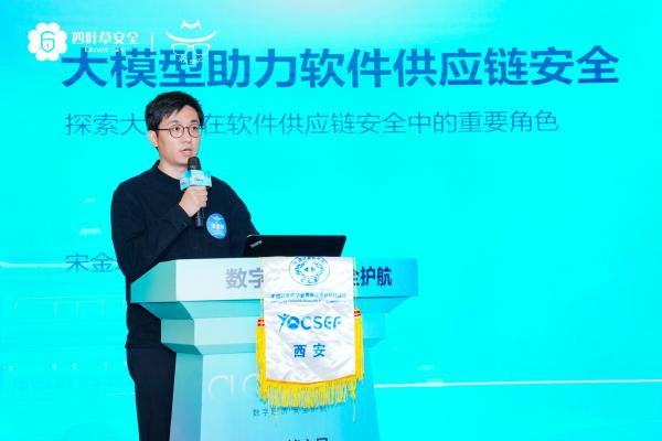 宋金珂的发言题目是“大模型助力软件供应链安全”,他表示,人工智能技术增强了安全,但也新增了安全威胁,他以源码安全、软件包安全为例阐述了软件供应链安全的背景,介绍了大模型赋能软件供应链安全的相关研究工作,展望了大模型供应链安全的未来研究和发展趋势。