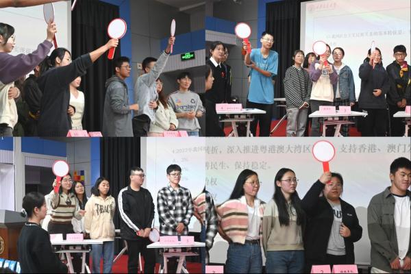 10月21日下午,赛事复赛在南洋书院东九13楼报告厅举行。复赛设置“必答题”“分组抢答题”“风险抢答题”三个环节。在趣味的比赛形式,高涨的竞答热情,愉快的交流氛围中,同学们对于理论学习的认知不断深化。