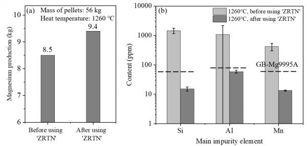 图2 使用“阻热梯凝器”可显著提升粗镁产量,同时还大幅降低粗镁中的主要杂质含量
