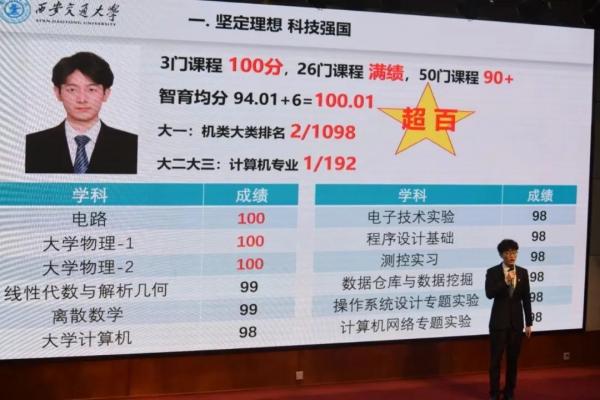 大一学年,徐望瀚因体测差1分未得优良。但他直面问题,坚持锻炼,体测成绩稳步提升,大三体测成绩90+。三年来获得国家奖学金、西安交通大学优秀学生标兵等荣誉。
