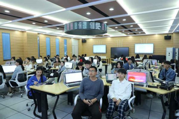 据了解,该金融科技实验室仿照证券交易大厅设计,配备有环形跑马屏、互动显示屏及38个学生实验终端,集成同花顺金融数据平台、金融资讯分析与模拟交易平台、量化投资模型开发与研究平台,在直观、实时地展示金融商品的行情数据、资讯信息的同时,学生也可以运用智能工具,进行金融大数据处理与分析、量化投资实践,真正做到让知识“活”起来。