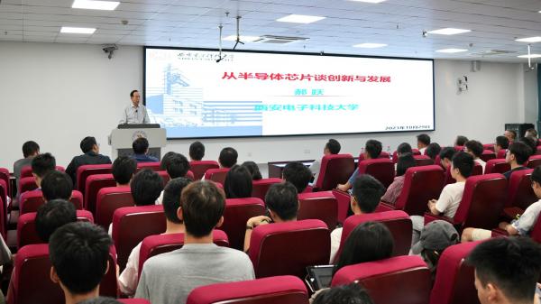 10月30日下午,中国科学院院士、微电子专家郝跃莅临西安电子科技大学杭州研究院,为近400名师生带来一场以“从半导体芯片谈创新与发展”为主题的精彩分享。杭州电子科技大学原副校长、西电杭研院“讲席教授”孙玲玲,杭州电子科技大学副校长李文钧教授参加,报告会由杭州研究院党委书记邓军主持。