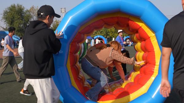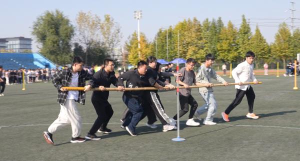本次研究生运动会设置有三人制篮球赛、蛇形跑接力、绑腿同行比赛、拔河、集体跳大绳、八人持竹竿蛇形往返跑接力、毛毛虫竞速、步行滚筒竞速等8个比赛项目。这些项目的共同点是同时富有趣味性和团体性,每一位学生无论运动基础如何,都可以欢声笑语地参与进来。其中三人制篮球联赛每队需包含2名导师4名学生,不限男女且每场必须有一名导师参赛。这种新颖的规则也极大地提升了师生间、男女同学之间的凝聚力,回归了集体运动的社会和趣味属性。