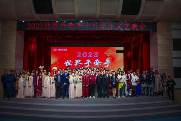 10月27日晚,西安电子科技大学2023年世界手牵手中外学生文艺晚会在南校区大学生活动中心小剧场举办。晚会由中外学生合力演绎,国际学生导师、各学院外事干事以及校内外嘉宾齐聚一堂,来自53个国家的450余名中外师生参加活动,共同观赏了这场精彩纷呈的视听盛会。活动特别邀请西安高新区第二十三小学(西安高新区西电附属小学)的20余名小学生为观众表演《闪闪的红星》。此外,校团委和人文学院也选送了3个精彩的节目。