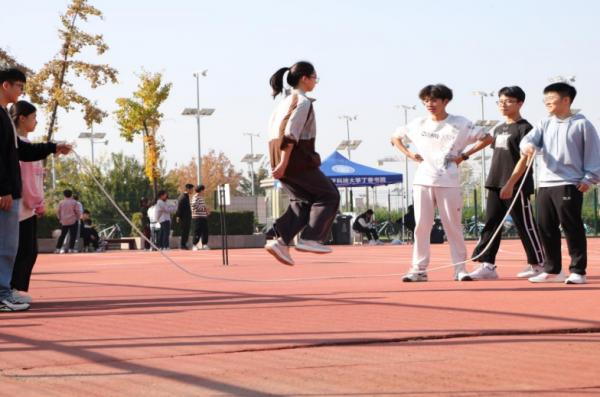 为丰富新生课余文化生活,引导新生感受体育的魅力与激情,增强体魄,促进班级内同学交流,10月28日,由体育部、丁香书院联合举办的“凝心聚力 ‘绳’彩飞扬”新生跳绳班级赛在南操场举行。