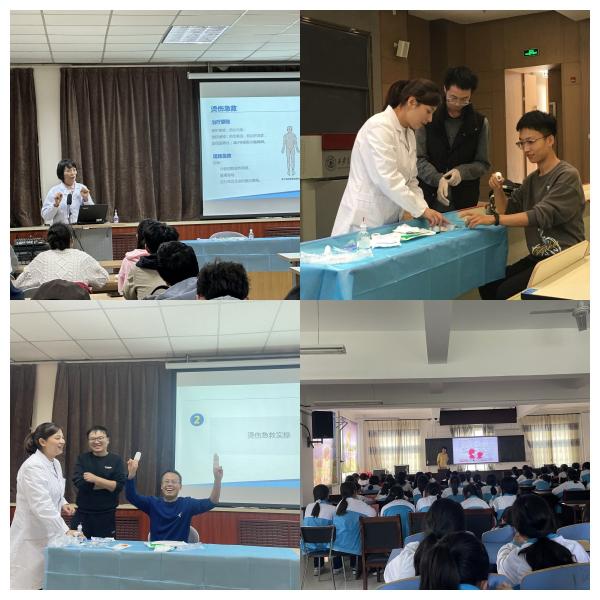 她说:“劳育课真的非常有意义,当得知开设医疗劳育课程时,我特别高兴,第一时间就报名申请开课。最初开课还是有点紧张的,用了近一个月的时间准备、打磨课程,与校医院的老师们一起反复修改了3次课件。直到第一节课后,同学们的反响还不错,我揪着的心才放了下来。我想让同学们以一种轻松的状态来学习这门课程。”在与杨医生交谈的间隙,杨医生的手机响起,电话那头是联系杨医生商议赴乾县杨汉中学为青春期的学生们开展健康教育讲座宣传的事宜。杨医生说,从医18年来,最大的感触就是做好医疗知识科普宣传非常重要。学校开设的劳育课正为我们提供了这个平台,同学们对健康的关注,比我预想的要高。我尽可能多的向同学们讲授意外伤害和急症的处理技能,促进同学们提升自我保护能力。同时,传递给同学们冷静、有效的面对和处理生活中突发情况的意识。这个过程中,我也在进步,只要同学们有需求、学校有需要,我就会坚持做下去。