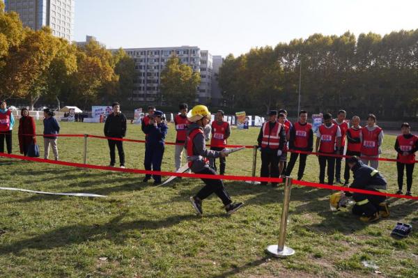 柴渭宣布消防运动会比赛开始,为本次运动会鸣笛发令。他表示,消防安全事关关系国家、社会安全稳定,事关每一个家庭和个人的平安幸福。一直以来,学校高度重视校园消防安全工作,坚持贯彻“预防为主、防消结合”的方针,不断加强对消防工作的组织领导。在全体师生员工的共同努力下,形成了共建共治共享的消防安全治理新格局。今天开展消防运动会,也是为了传承和发扬师生关注消防、重视安全的传统,同时创新消防安全宣传教育的活动形式和载体,希望大家在享受趣味比赛的同时,了解关注校园消防安全,学习掌握消防知识技能,增强消防安全意识和自防自救能力,合力筑牢校园消防安全“防火墙”。