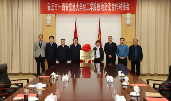 29日上午,苗晋英一行拜访了安丘市委市政府,看望学院的挂职干部杨福胜并参加校地合作对接会。安丘市委书记贾勤清,市委常委、组织部长、统战部长董卫安,市政府副市长刘鑫、市政府科技副市长杨福胜(挂职)等参加,会议由董卫安部长主持。会上观看了安丘宣传片,贾书记、苗书记分别代表安丘市委市政府和交大化工学院致辞,双方均表示了进一步加强校地合作、助力安丘经济社会发展的过程中实现共赢的意愿,杨福胜介绍了挂职以来工作开展情况,伊春海副院长和刘鑫副市长共同为西安交通大学校外就业实践基地揭牌。会后,苗晋英一行赴已与段培高教授团队开展实质合作、建立校企合作平台的山东埃尔派粉体科技股份有限公司调研,参观了公司的展厅和车间,了解了与学院研发项目的进展,对后续的拓宽合作进行了探讨。