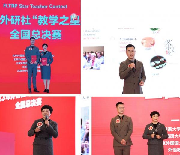 团队紧扣“提升文化自信”单元主题,深挖教材内涵,设计了单元任务——“向世界讲述中国的茶故事”;采用“产出导向法”(production-oriented approach,POA),围绕“听众分析”这一单元技能目标设计教学活动,科学运用数字化资源与平台,促成有效学习。比赛全程,高洋和卢燕华两位老师仪态端庄从容,表达清晰流畅,完美呈现了教学设计。团队的参赛表现展现了语言教学与育人目标的融合、教学技艺与数字素养的融汇,同时,凸显了“厚植家国情怀,培养学生国际传播能力”的育人目标,得到专家们的好评,最终获得全国总决赛季军(特等奖)。