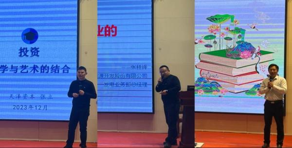 在校友分享环节,天泽控股集团股份有限公司副总裁、合伙人张立,阳光新能源开发股份有限公司发电业务部总经理张桂锋,安徽校友会秘书长、安徽省智慧产业研究院院长、云耕农场创始人方超三位校友分别作了题为《投资:科技与艺术的结合》、《“双碳”时代清洁能源投资的经济视角》、《云耕健康美好生活》的报告,分享了投资策略、清洁能源产业发展、科技农业生态循环实践等方面的经验体会。