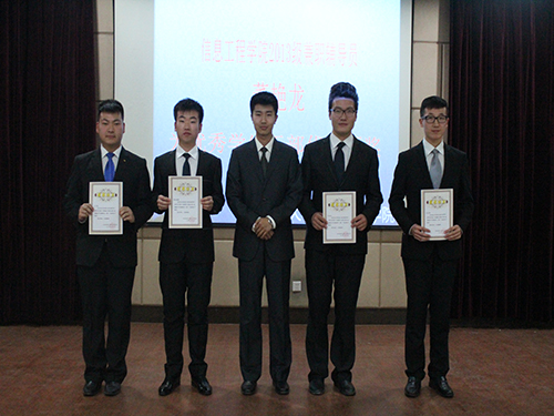 团委副书记杨楠宣读了年度优秀部门、优秀学生干部评选结果。实践部、素质拓展部、外联部、文艺部获得了年度优秀部门称号。朱昱全、陈建文等同学获得了优秀学生干部称号。14级兼职辅导员董艳龙、学生会主席付先凯分别上台为他们颁奖并合影留念。