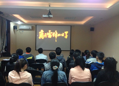 19:00,活动正式开始。首先,由班长为大家介绍雷锋精神的含义并与同学们交流了践行雷锋精神的实际行动,以此来鼓励同学们去切身学习雷锋精神;随后,班长为大家播放了雷锋题材的电影《离开雷锋的日子》,同学们认真地观看了雷锋同志在日常生活中的点滴奉献,在看到雷锋同志去世的画面时,有些同学不觉的留下了眼泪;最后,同学们交流了有关此电影的观后感,在一阵热烈的掌声中结束了这次富有教育意义的活动。