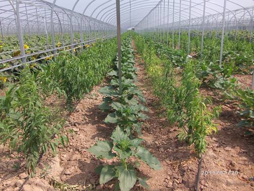 水利灌溉利于民,农业大棚利扶贫。经过一上午的努力,队员们收获颇丰。其中,在对一、二组的走访中,队员了解到村里农作物的基本种植情况,水利灌溉,以及政府引资进行的扶贫项目。调研路上,从路边劳作的伯伯口中得知,村里主要以玉米,小麦轮作为主,有的农户会选择种植两季玉米。由于天气过于炎热,便向伯伯们询问到农作物的灌溉问题。通过伯伯以及陕西本地同学的解释,实践队的队员很快找到答案。黄河水引渠,有效地解决了灌溉难题。这大概也是渭河平原农业发展的一大特色吧。说起农业,更值得的一提的是村里的刚建好的农业大棚——政府大力扶植的一个扶贫项目。在伯伯们介绍后,队员们亲临现场,被眼前的数亩油葵惊讶到。那一株株鲜艳的油葵在艳阳的照耀,显得格外诱人,这是不是也预示着村里的经济将会更上一层楼!