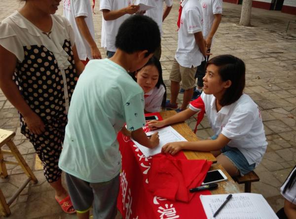 广大的村民在了解到我们的志愿支教活动后,逐渐来到我们学校招生点询问了解更多招生信息,起初是部分家长来询问,他们还在犹豫报不报名。我们给他们详细说明我们是免费义务支教,是为了拓宽学生知识面,提高学生的素质。我们提议可以让学生亲自来报名点了解招生信息,听从学生的意愿。
