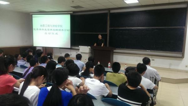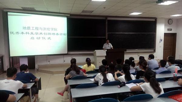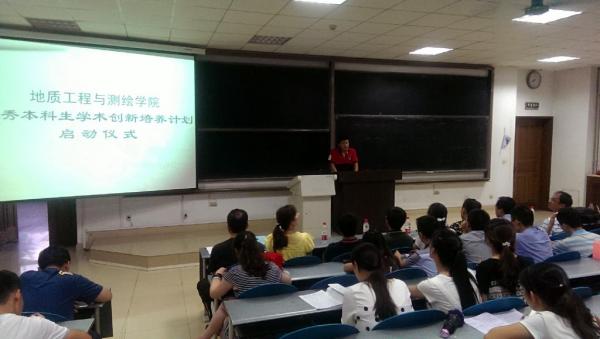 2015年7月8日晚7:00,地测学院优秀本科生学术创新培养计划启动仪式于图书馆1101教室顺利召开。地测学院党委书记杜福元、党委副书记滑思忠、院长范文、副院长邵广周以及各系教师代表、学工办全体教师出席了本次会议,我院入选此计划的二百余名学生参会。本次大会由学院党委副书记滑思忠主持召开。
