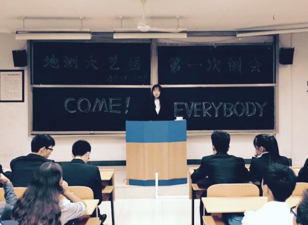 2015年9月16日晚9:00,长安大学地测学院大艺团2015-2016学年上学期第一次全体例会于修远教学楼2303教室顺利召开。大艺团团长段君龙,行政分团团长李宁,文艺分团团长冯凌珊,秘书长张继恒,副秘书长李子瑛,宣传部部长余彦,歌唱部部长段琳敏,舞蹈部部长韩树鹏,器乐部部长田梦芸,主持部部长袁思梦,话剧部部长尚森,武术部部长刘成建及全体部员参与了此次会议,此次会议由主持部的一位同学主持。