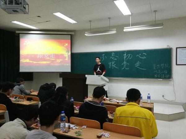 2017年4月12日晚7点,资源学院2016级地质二班于明远1315举办“不忘初心跟党走”的主题团日活动。全班同学参加此次活动,团委组织部干事施震同学出席活动。
