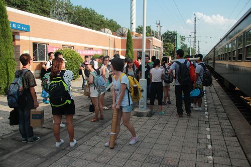 尽管天气炎热,34位建工学子仍然保持纪律,在老师的带领下有条不紊地堆放行李,乘车下车。在车厢中,队员们相互沟通,相互鼓励,为劳累的路程带来了一丝安慰。同时,陈英老师为顺利完成支教实践,进一步与志愿者进行交流沟通,以完善下一步实践工作计划,充分展现出老师的敬业负责。