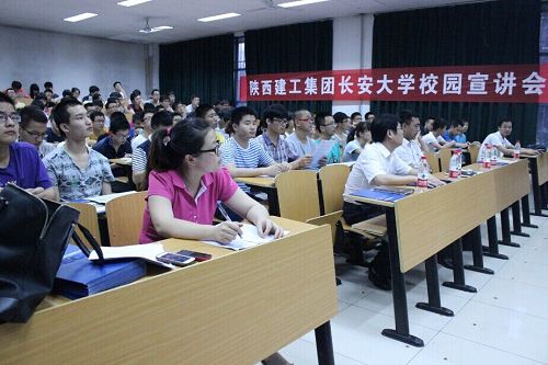 6月24日晚上7点30分,陕西建工集团长安大学校园宣讲会在明远3101教室顺利举行。莅临本次宣讲会的领导和老师有陕西建工集团总公司组织部长及人力资源部部长刘小强、人才培训交流中心主任李嵬、人力资源部招聘主管佀伟、建筑工程学院党委副书记李武尚、学办主任陈德育和团委副书记肖晶晶。主持人由院学生会部长梁晨予担任。