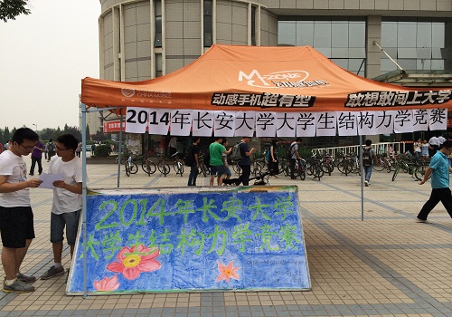 6月10日-11日,建工学院科协于渭水校区滋兰苑东门广场、树蕙园西门广场开展2014年长安大学大学生结构力学竞赛宣传活动。