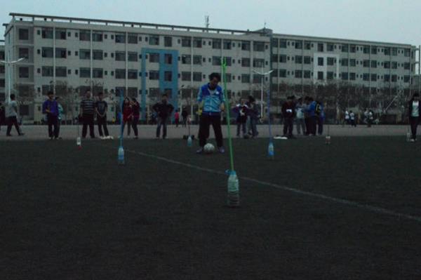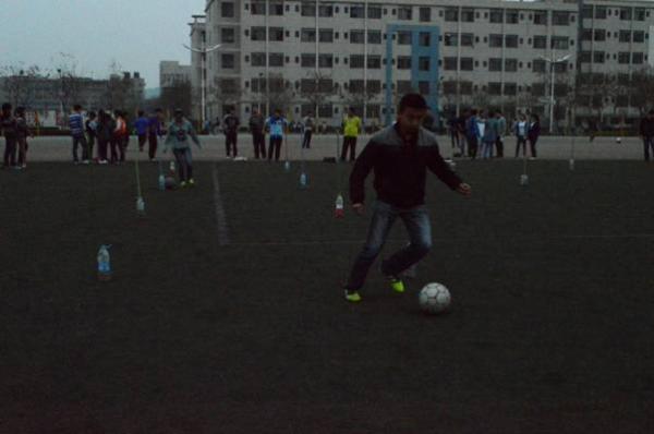 运动员做了分准备活动后,开始了足球绕杆和足球颠球的训练。队员们排好队形,运球,接球,一切有条不紊的进行。在运球的过程中队员也会出错,但在12级老队员的指导下,队员们不断地改正,不断地进步。颠球的运动员们也在紧张的进行紧张的训练,他们紧紧盯着足球,小心翼翼的颠着足球,13级的队员在旁边计数,还不时提醒队员们沉住气,不要急。