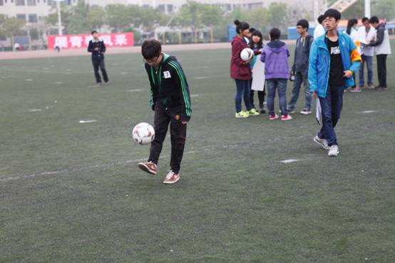 足球颠球作为我院一直以来的优势项目,往年也取得不错的成绩。这样的历史既给队员们带来了压力也给他们带来了动力。在最初训练时队员们成绩不是很理想,但在12级老队员的指导下,队员们不断地改正,不断地进步。他们紧紧盯着足球,小心翼翼的颠着足球。