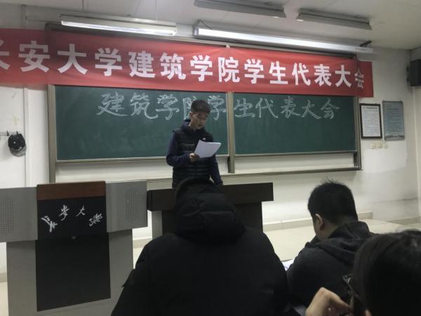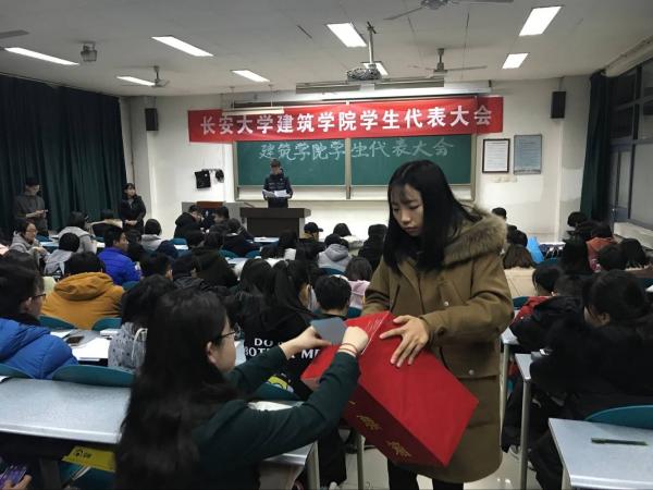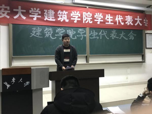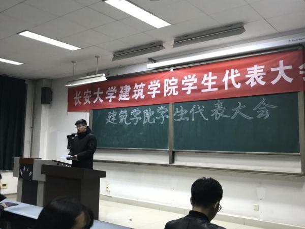 首先,刘子轩老师代表教师发言,强调了学习十九大精神及开展学生代表大会的重要性,并就学习十九大精神结合实际向同学们提出建议。之后他对代表的选举过程与要求进行介绍并强调注意事项。按照大会议程,学生团委副书记郝可彤宣读选举办法及选举原则,对接下来的选举方式进行具体介绍,通过了监票人和计票人名单。主持人郭方对大会十四位候选人进行详细介绍,通过了建筑学院出席长安大学第二次学生代表大会代表候选人名单。最后,经各与会代表投票选举出了建筑学院出席长安大学第二次学生代表大会代表,本次大会发出选票一百张,收回选票一百张,九十九张有效票,一张无效票。