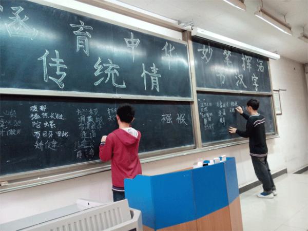 本次团日活动分为两个环节,第一环节为“我说你写”,在这一板块中由主持人随机说词语,参赛者在黑板上书写词语,出错则下场;第二环节为“你抽你写”,即由选手自己抽取盒子中的纸条,然后把纸条交给主持人,由主持人念出纸条中的词语,选手在黑板上书写词语。下午3:30,主持人宣布高分子班团日活动正式开始,活动进入第一个环节,同学们积极参与,主持人随机说出我们熟悉的词语,比如“锱铢必较”、“瓮牖绳枢”等词语,最终李小鹏同学成为本轮获胜者。接下来进入第二环节,学号从1号到38号的同学依次抽取盒子里的纸条,写出纸条上所示的汉字,马克同学为本轮获胜者。整个活动过程中现场秩序井然有序,同学们以极大的热情参与其中。