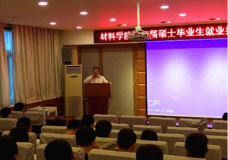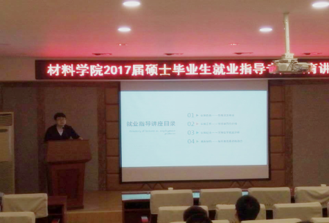 6月1日下午4:30,材料学院在小寨校区第五教学楼二楼报告厅举办了2017届硕士研究生就业指导教育专题讲座。参加本次教育讲座的有材料学院党委书记李昌林、党委副书记闫秀萍、学办主任杨树及2017届全体研究生,会议由闫秀萍副书记主持。