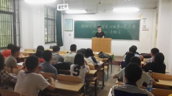 2016年5月23日下午材料学院本科生12级第二学生党支部在本部b149召开“两学一做”专题学习会。本支部全体党员参加专题学习,专题学习由支部书记陈真同志主持。