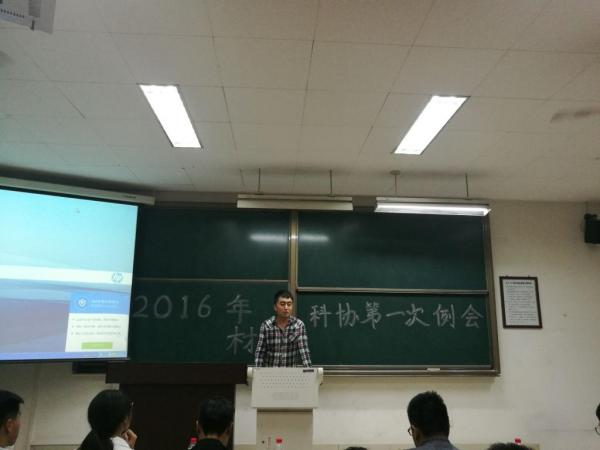 9月20日晚7点,材料学院科协本学年第一次例会在明远1416教室召开。学院16级辅导员刘延海老师、团委副书记王筠博、科协主席冯旭、学生会主席毕宜智、心协主席沈淑馨、大志团主席张学磊、科协副主席杨政、袁红晓,科协各部长及全体干事参加了本次会议。